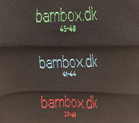 Bambox bambusstrømer uden rib findes i 3 størrelser og har farvekode under foden for let parring efter vask: